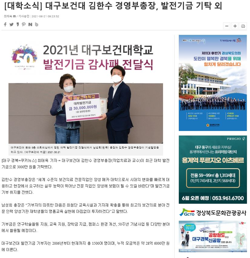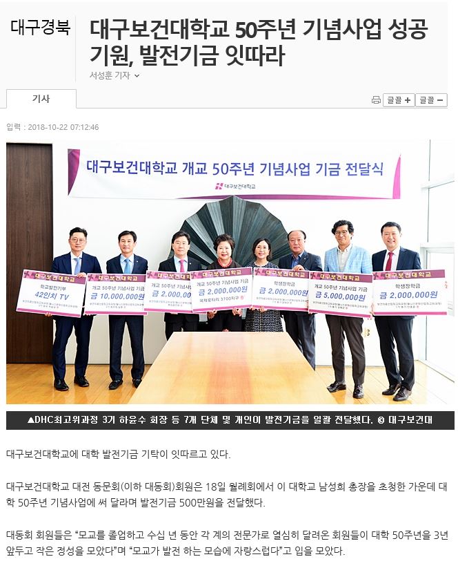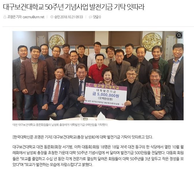 대전 대구보건대학교 동문회원님들의 소중한 대학발전기금 5,000,000원에 진심으로 감사드 ...