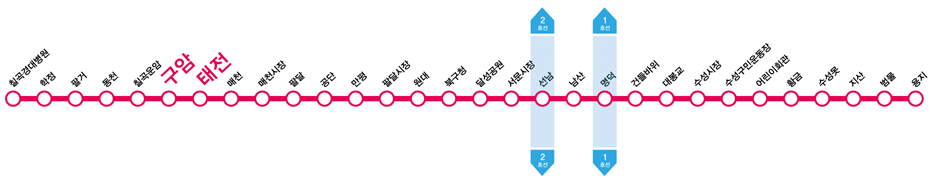 | 칠곡1 | 팔거역→ 강북경찰서→북구구민운동장→구암초등학교→구암교→대구보건대학교 부근 |